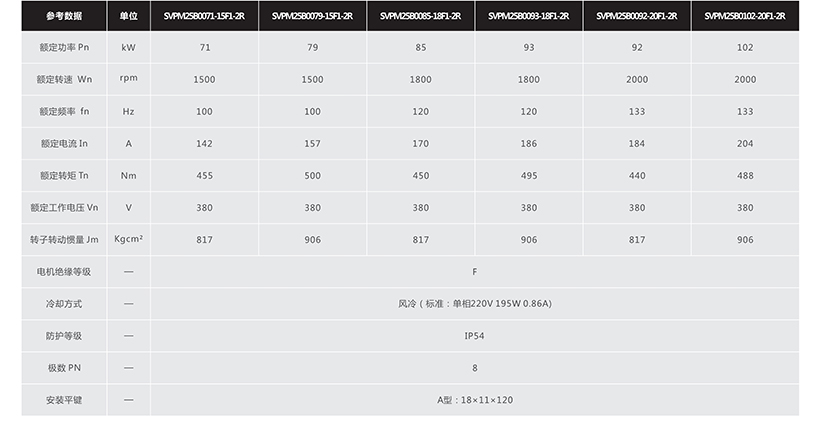 2.電機在基頻以下恒轉(zhuǎn)矩輸出,結(jié)合控制系統(tǒng),在0轉(zhuǎn)速時,也可達到額定轉(zhuǎn)矩輸出;